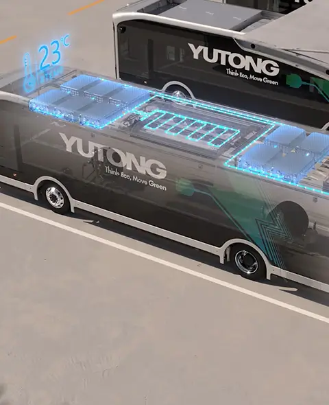 Yutong builds comprehensive safety protection from the battery to the whole vehicle. This includes nitrogen protection system, multi-layer fire-resistant structure, and all-around collision protection.