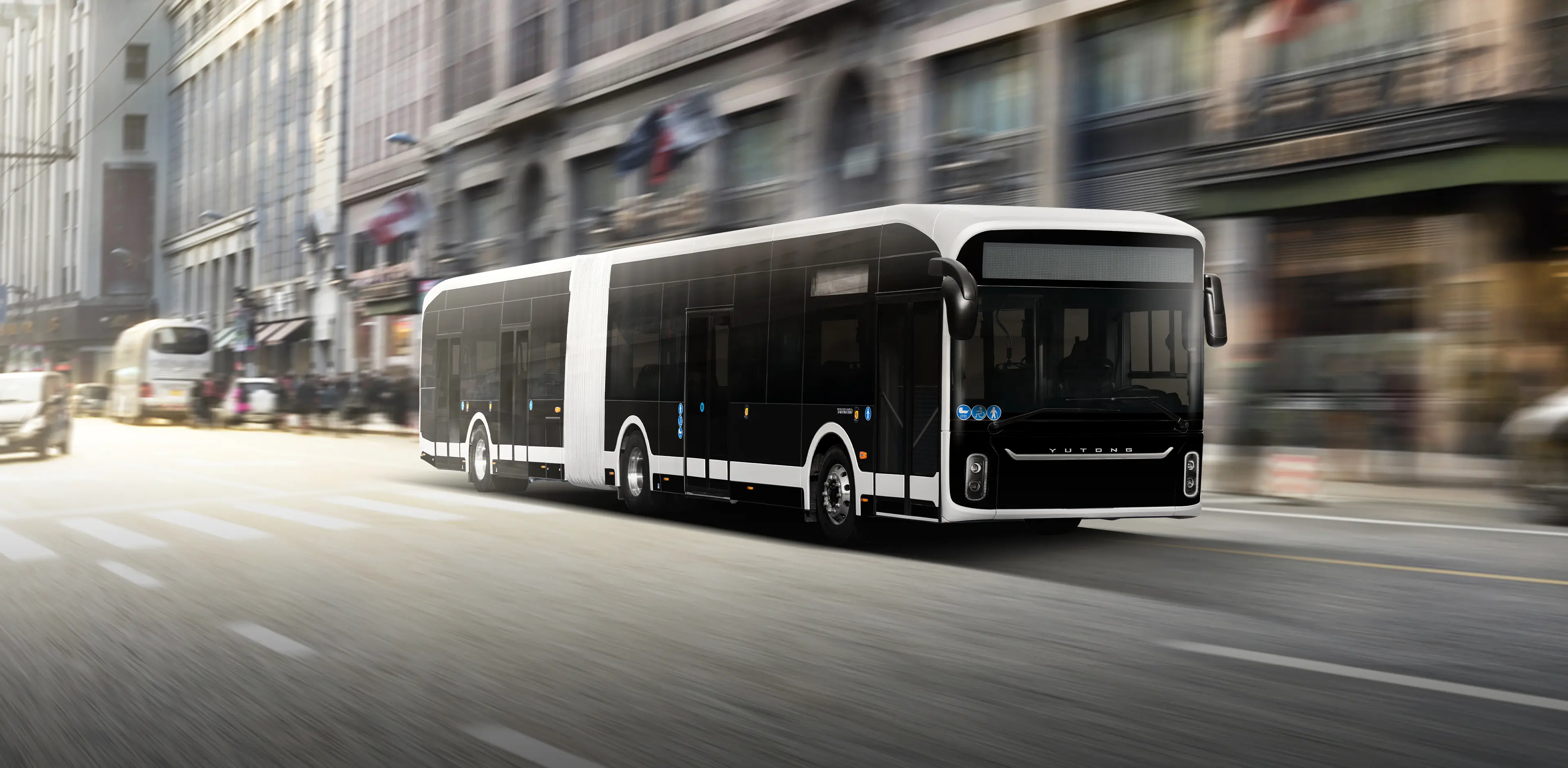 The Yutong U18 electric bi-articulated bus combines aesthetics with maximum seat capacity and is designed for busy urban arteries.